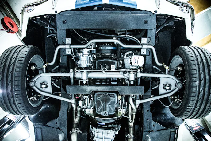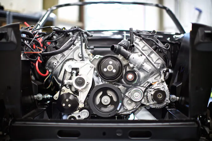 All Revology replica Mustangs are built with carefully selected components—like Eaton differentials, Ford Performance Coyote engines, and Total Cost Involved suspensions—to deliver modern driving dynamics.