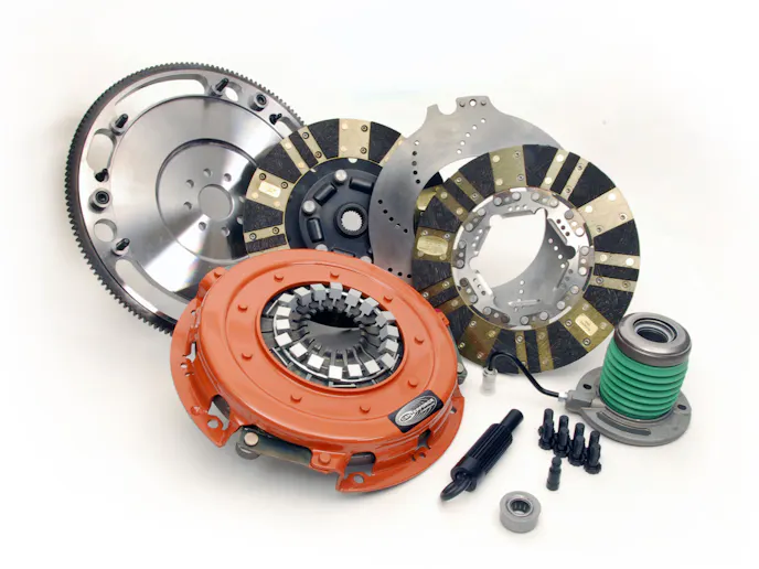 The DYAD DS Multi-Disc Clutches by Centerforce, the next level in high-performance, is now available for 2009-2013 Ford 5.4L Supercharged Shelby GT500 Mustang. The DYAD DS part number: 04115705 (Pressure Plate, Disc Set, Floater, Low Inertia Steel Flywheel, Alignment Tool, Pilot Bearing, Hydraulic Bearing, and Hardware). This new Multi-Disc clutch system replaces the current pressure plate, disc, and flywheel assembly with a higher holding capacity system, designed for a direct bolt in replacement.