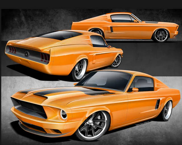 Crafted like a true piece of artwork, this stellar Mustang also features modified body lines, a custom hood, and even a unique hand-crafted rear wing that fits perfectly along the edge of the fastback’s window. All this is combined with a classic orange and black paint scheme, Kicker sound system and Old Air climate control system for the perfect mix of classically-inspired looks and modern performance inside and out.