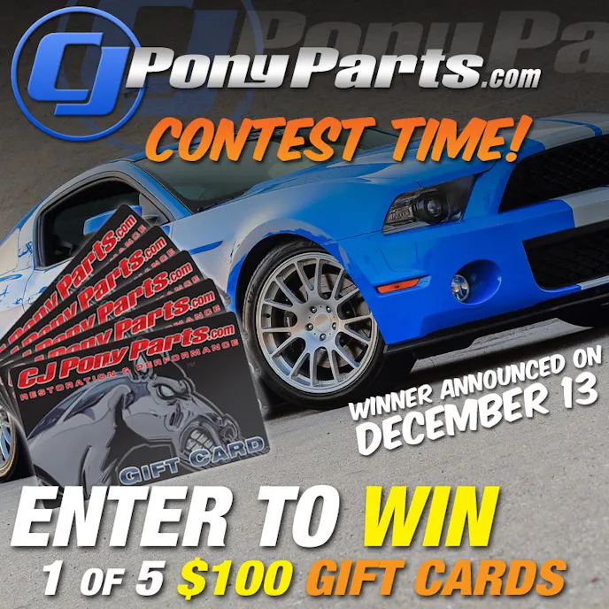 Our good friends over at CJ Pony Parts offer some of the best Mustang parts and prices around, but with the Christmas holiday fast approaching, they giving back to their customers.  You have to act fast, as this contest is over on December 13th, but you can be the proud owner of a brand-spankin’-new $100 gift card to CJPP by following these simple steps.