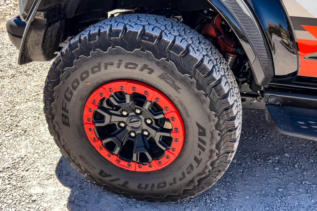 Adding to the visual drama are the Code Orange rings on the wheels. These rings don’t just serve as a cosmetic enhancement; they symbolize the Bronco’s unity with the great outdoors. The wheels, coupled with the graphics, establish a cohesive and commanding presence that sets the Bronco Raptor apart from its peers.