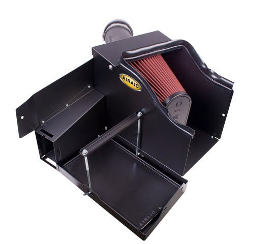 AIRAID’s new Power Stroke system replaces the restrictive factory air box setup with an AIRAID Cold Air Dam which also incorporates a heavy-duty battery tray, complete with urethane battery pad. At the heart of the new AIRAID Intake System is a HUGE 1700-CFM washable and reusable Premium Air Filter that is available with either SynthaFlow composite or our newest SynthaMax Non-Oiled filtration technology.