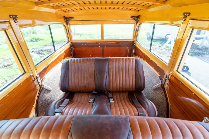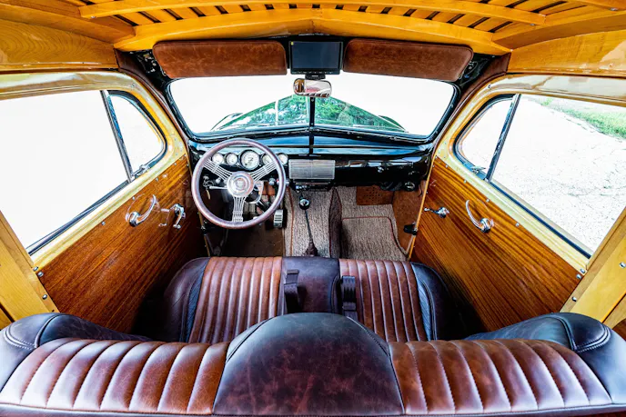 The chassis incorporates Ridetech single-adjustable coilover shocks, a power steering rack, and splined front and rear sway bars. Stopping power comes from Baer 14-inch, six-piston brakes on all four corners, making sure that the Woody can handle its newfound performance capabilities.