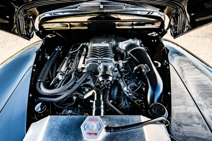 Under the hood, a Ford Performance Gen 3 Coyote 5.0-liter crate engine, complete with a supercharger kit, supplanted the factory engine. This modern engine offers a substantial increase in horsepower and torque compared to the original Flathead V8. The exhaust system is custom-built from stainless steel and features MagnaFlow mufflers.