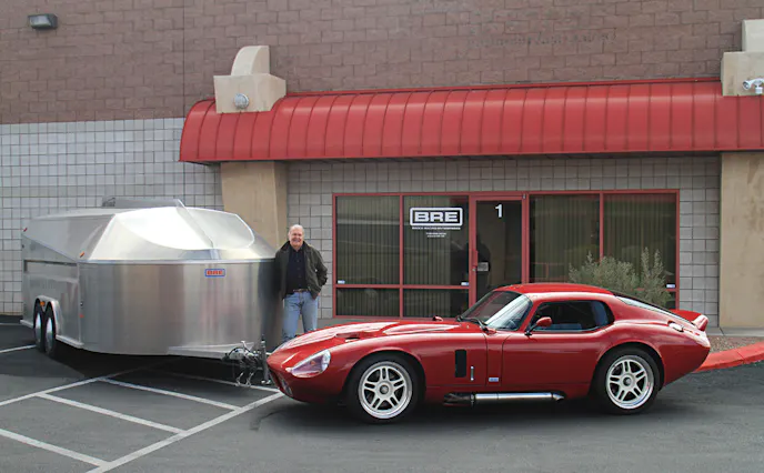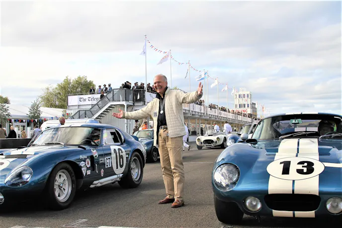 Peter Brock’s work in automotive design represent amongst the most coveted cars in the collector market which include the 1963 “split-window” Corvette StingRay and the Shelby Cobra Daytona Coupe. While there were a plethora of the StingRays, there were only six Daytona Coupes. The rarity alone — then add the amazing racing pedigree — have made the Daytona Coupes values rise to nearly eight-figures. At the Goodwood Revival, in 2015, all six of the fabled Coupes were reunited, with Brock in attendance, for exhibition laps. A feast for the eyes and ears, Brock is excited that the copies will prove even more amazing at “full-song.”