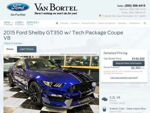 The first GT350s have been arriving at dealers and in customer driveways for a couple of months now, but that hasn’t discouraged some dealerships from continuing to mark prices through the roof. Yahoo Autos found an advertisement from Van Bortel Ford in East Rochester, New York, that had a Shelby GT350 priced at a staggering $149,500, about triple the base price of this track-ready Mustang.