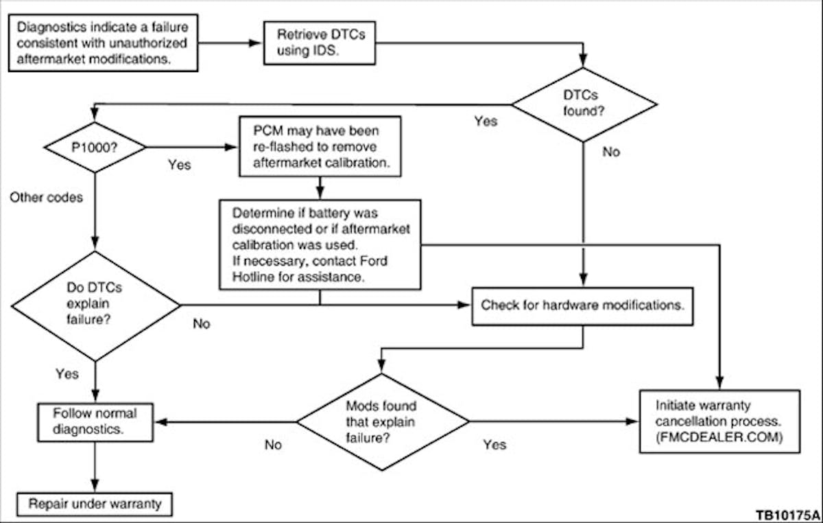 Clearly, Ford has seen enough instances of damaged components that it feels a consistent evaluation procedure is required across its network of dealers. This may be a result of cases where improper procedures have been used at the dealer level to initiate warranty denial where modifications are involved.