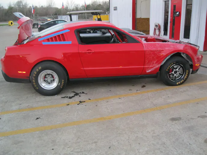 A couple of weeks ago we told you about this car that’s being constructed by DynoJoe Performance down in Houston, Texas. We heard from Joe today and he updated on the build’s progress, which is under the gun at this point as the team is trying to make the NMRA’s season-opening race at Bradenton Motorsports Park over the second weekend in March. The 2011 Mustang GT body has been transformed by the DynoJoe team along with Mark Bannert, the paint-and-body whiz that’s tuned up the color and 2013 body panels at Collision Craftsman, also in Houston.