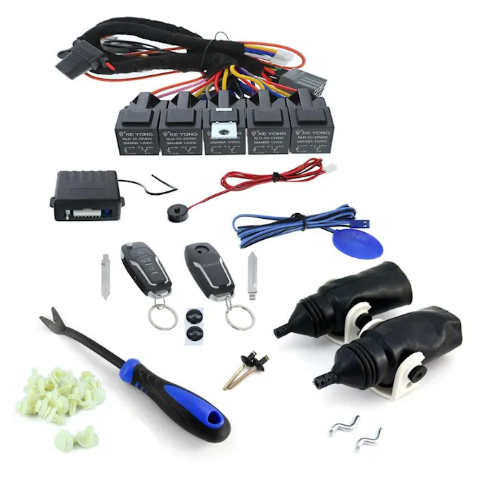 The system includes the control module, a plug-and-play wiring harness, and a pair of factory-style key fobs with flip-out keys. It even includes a control app that allows remote locking and unlocking with your smartphone. The installation is straightforward, and the system will even unlock the trunk of cars with factory release buttons in the glovebox.
