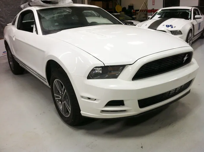 There are a few nicks and bumps on the chassis mentioned by the seller – a dent in the bottom of the spare tire carrier, and the driver’s door has a few dings as well, but these are non-issues for someone that’s planning on building a complete car – easily fixed in the body shop. The 2011 body has been outfitted with 2013 bodywork, including the big-mouth grille and a fresh rear bumper cover.