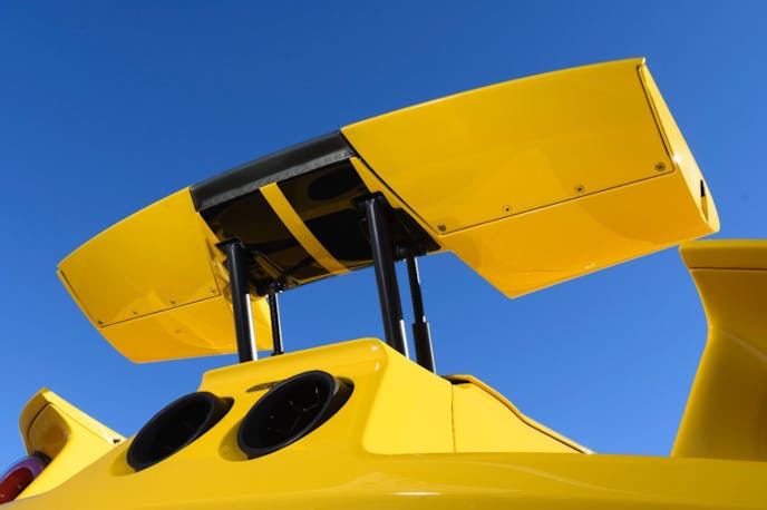 They did so by employing anti-lag turbo tech used in road racing, which keeps the throttle open even when the gas pedal isn’t being uses. The dual-fuel system is turned off but boost remains ramped and ready when the driver commands acceleration.