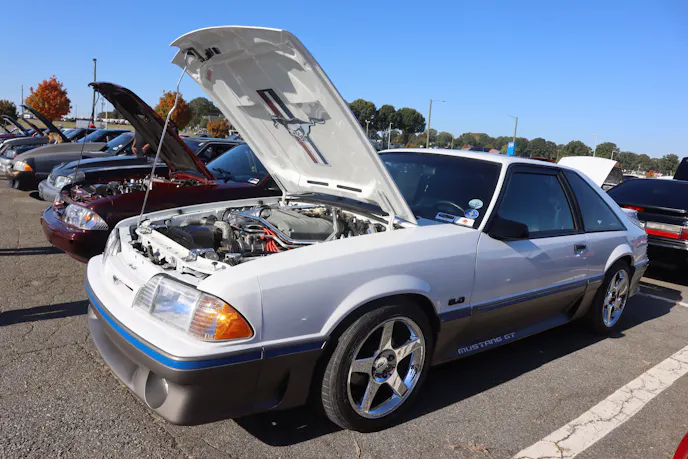 Friday and Saturday bring everything together at ZMAX Dragway. Friday’s All-Ford Cruise-In mixes drag racing, roll racing, drift exhibitions, autocross, and burnouts, including Cobra Sam’s burnout competition, alongside the TREMEC Stick Shift Shootout and Vendor Choice Awards. The Fox Body-Only Cruise hosted by Foxy Events puts a spotlight on a beloved Mustang era.