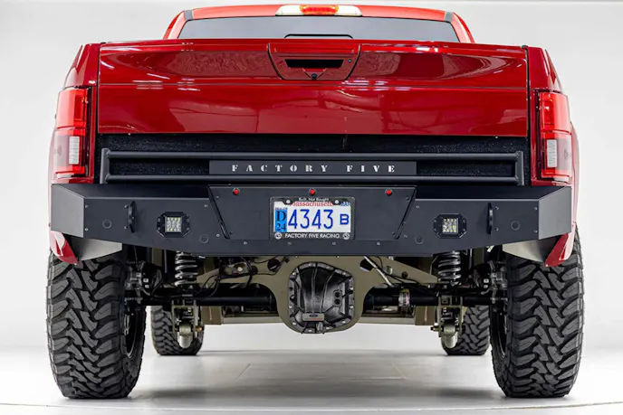 Similar to using a Mustang as a donor car to build a classic replica from Factory Five, the XT-1 utilizes a modern F-150 cab and drivetrain as the foundation for the build. The kit starts by replacing the factory frame with an off-road capable steel frame, which comes standard with a weather-resistant powder coating. The frame is equipped with mounting points for long-travel suspension. The front suspension features tubular upper and lower control arms, remote reservoir dual-adjustable Fox shocks, and standard front sway bars. With CV joints and four-wheel drive, the front suspension allows for 16 inches of travel.