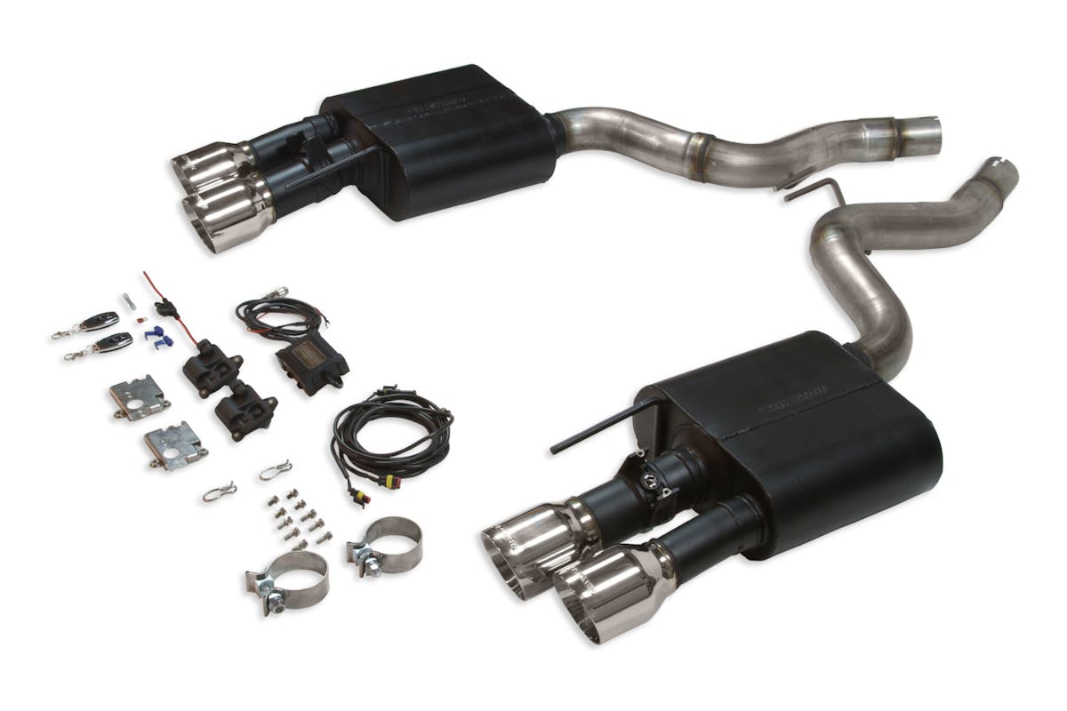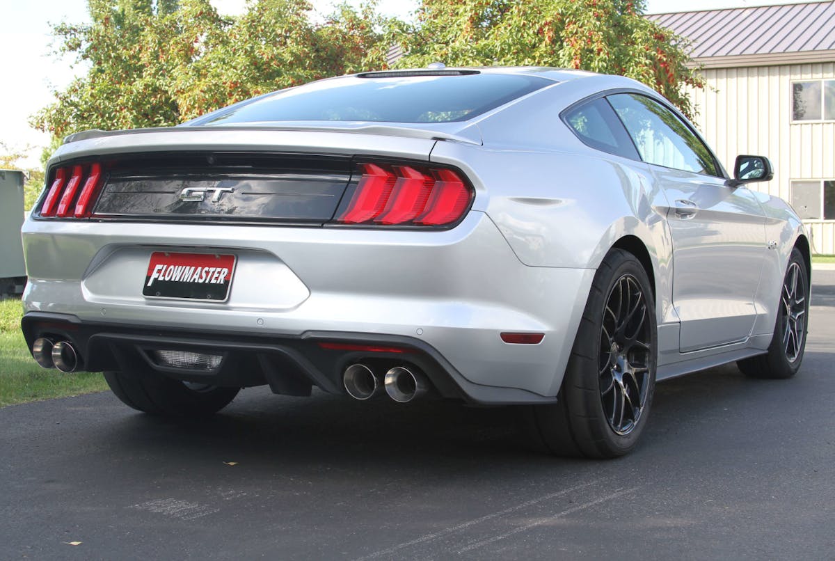 Flowmaster exhausts may be synonymous with Fox-body Mustangs in many minds (let’s be honest — there’s just something about a street Fox with “Flowmasters”), but the brand is constantly evolving and bringing new applications and products to the market. Your 2018-2020 Mustang GT can now roar to life (or keep quiet) with Flowmaster’s American Thunder Axle-Back Exhaust System with Active Valves (PN: 817859).