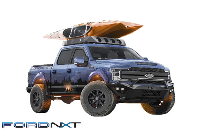 • Ford Accessories kayak rack by Yakima and molded fender flares by Bushwacker