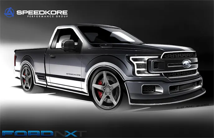 Known for its carbon fiber-enhanced machines, SpeedKore Performance Group gave that treatment to a 2018 F-150 XLT short-bed. Aside from its striking looks, it walks the walk thanks to a supercharged Coyote and a lowered suspension.