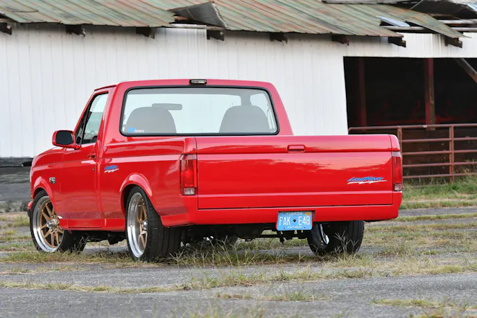 Selecting 16 cars proved to be an exceptionally challenging task, as we cover a wide performance spectrum ranging from classic cars to modern muscle and everything in between. In the Sweet 16, a Coyote-powered backdraft Cobra was pitted against a SOHC Cammer-swapped Galaxie. A tribute to Glidden’s ProStock Pinto went head-to-head with the Bipolr New Edge Saleen. An unlikely combination emerged as a slammed Explorer ST faced off against an extremely clean Coyote-swapped, manual transmission Gen-1 Lightning. The battles raged on with a big tire Gen-2 Lightning going against a modular motor-swapped F-100.
