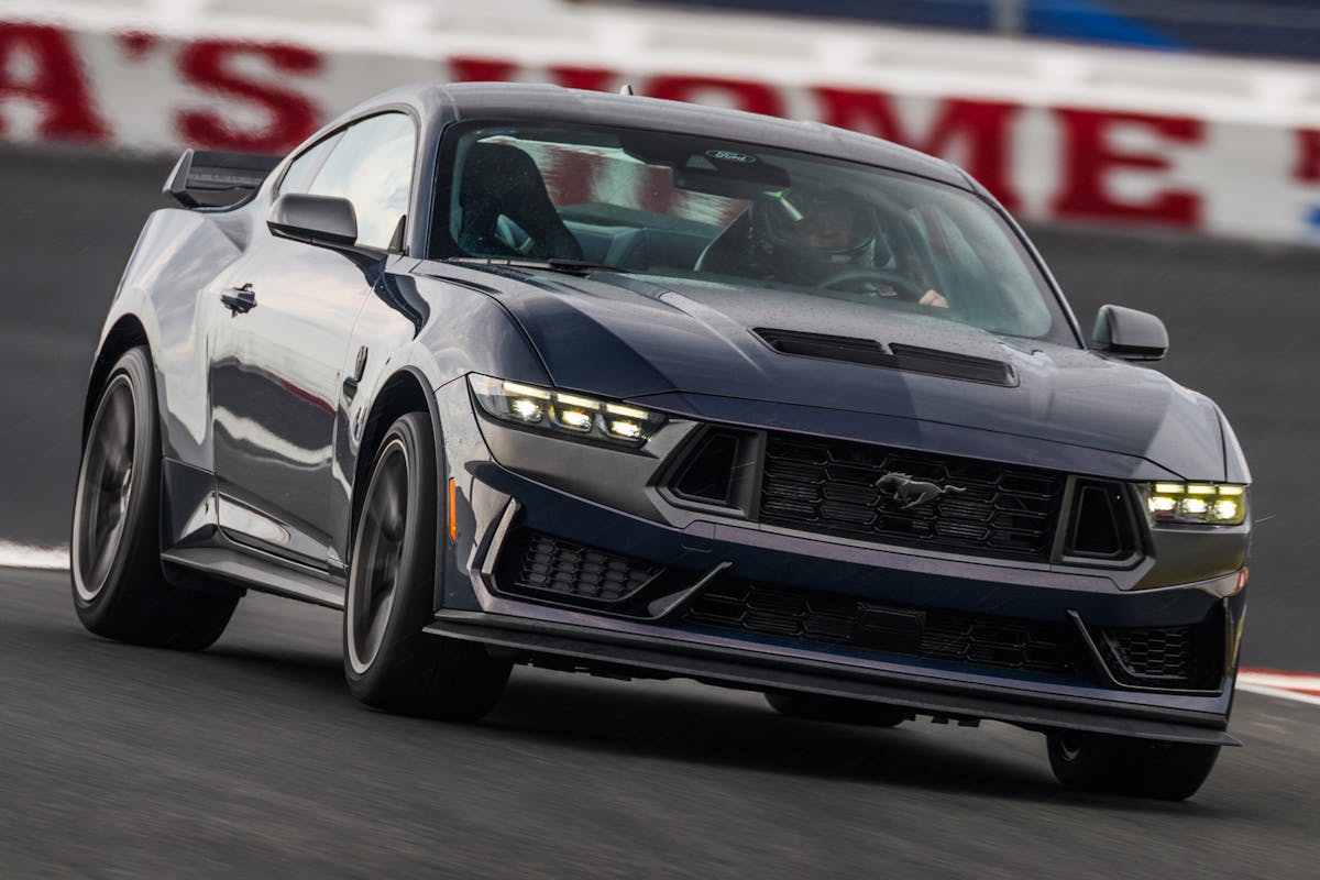 As has been the case with high-performance variants since the ’12-’13 Boss 302, the Mustang Dark Horse includes a trip to the Ford Performance Racing School for free instruction with a 3:1 attendee-to-instructor ratio that will show new owners how to wheel their performance ponies on the skid pad, autocross, and Charlotte Motor Speedway Roval.