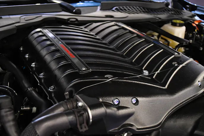 While there is no need to modify your factory-sealed Coyote engine, the FP800S kit includes a Ford Performance oil separator. Initially featured on the GT500 carbon-fiber track and handling packages, the Ford Performance oil separator prevents oil vapor from entering the intake system or, inevitably, finding its way into the intercooler. This leads to a cleaner intake tract and a better-performing engine.