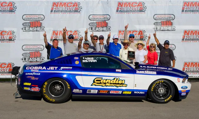 The big-dog Cobra Jet Super Stock class saw P.B. Candies in his 2010 5.4L CJ lined up with Ray Skillman and his 5.0L boosted piece. Both racers had been flirting with the 7-second zone all weekend, and in the final round, Candies posted an 8.000 elapsed time combined with a .043 reaction time to take home the win over Skillman’s 8.046.