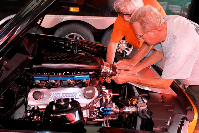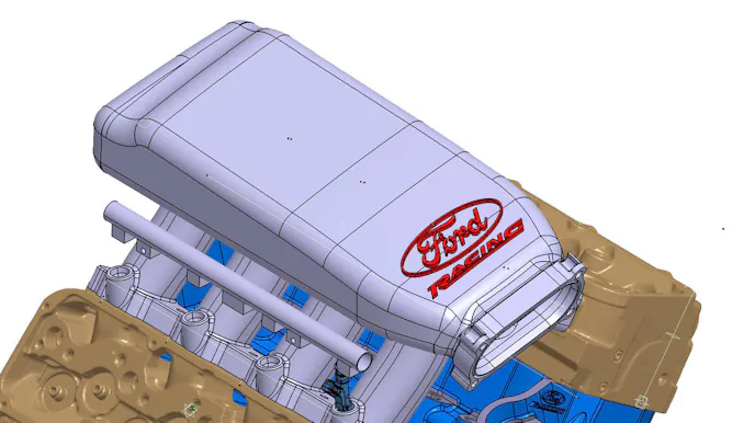 “It was critical that for the manifold it had to look like a production piece and that the throttle body had to be off-the-shelf.  We decided to model it after the 5.0 Coyote Cobra Jet intake using the common GT500 throttle body bolt pattern.  It allowed us to use the technology we have developed for newer intakes on an engine platform that traditionally did not have an intake like that.  Even though this generation Mustang never had a pushrod engine we wanted it to look as OE as possible,” Kershaw explains.