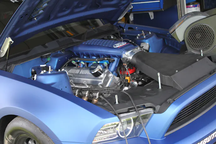 Both vehicles use BigStuff3 fuel injection that was calibrated in-house at Holbrook Racing Engines by Holbrook himself. The engines were delivered to Ford Racing customers Bo Butner and the Cook Brothers Racing team (car driven by Ken Miele), who used them during the event last week to get into the second round, Butner losing to Dave Connolly and Miele going down to eventual runner-up Kevin Helms.