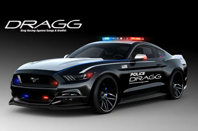 The boys in blue are coming to SEMA this year with their DRAGG Mustang EcoBoost sporting light bars a Vortech intercooler, Borloa exhaust, Wilwood brakes, and an Air Lift suspension, among others. DRAGG, which stands for Drag Racing Against Gangs & Graffiti, is a police-affiliated group seeking to connect with community groups in an effort to reduce gang violence and vandalism. A cool new Mustang is definitely on way to get the attention of the youth.