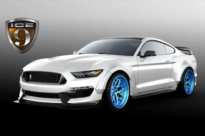 Next up is is the low-and-white Mustang EcoBoost by the Ice Nine Group, which drew its inspiration from road racing and the Shelby GT350R. It wears a custom widebody kit by Ice Nine painted in a brilliant custom white and black crystal paint, while inside the center console,steering wheel, and shift knob continue to draw inspiration from the race-ready Shelby. Of course one can’t emulate a race car without performance mods, and Ice Nine added a bigger Garrett turbo, Vortech “charge cooler”, and a prototype exhaust system from Corsa.
