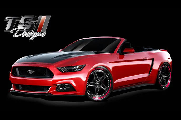 TS Designs went in yet another direction for its Mustang EcoBoost convertible, focusing efforts on a custom widebody kit to allow 22-inch Forgiato wheels with 13-inch wide low-profile tires out back, and slightly smaller wheels/tires up front. Under the hood are some mild performance upgrades, including a RaceTec intercooler, K&N air filter,MagnaFlow exhaust, and a suspension upgrade package from Steeda.