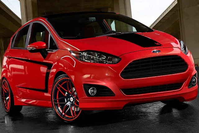 Like every other automaker selling cars in America (and even some that don’t), Ford is ramping up a big display for the 2013 SEMA Show at the Las Vegas Convention Center. The Blue Oval has already rolled out the red carpet for a trio of sexy Mustang concepts, though that is far from the only tuned rides sporting Ford badges that will be on hand. Ford’s massive Dreamcase display of tuned cars will also include custom takes of its smallest car, the tiny Ford Fiesta. The Blue Oval borrowed talented designers and engineers from across the aftermarket to give this little car a lot of stage presence this year.