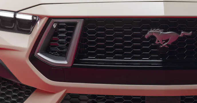 It also wears a special mesh grille, accented by headlights lifted from the Nite Pony package, that calls back to the first Mustang. The smoked taillights, also lifted from the Nite Pony package stand out against the three available paint options: Wimbledon White, Race Red, and Vapor Blue.