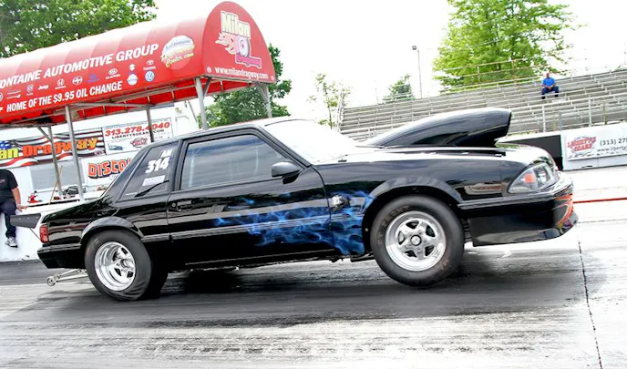 Despite the fact that he’s stationed over in England as the Director of Powertrain Engineering Europe, Ford vet and longtime racer Brian Wolfe made the trip to Milan Dragway in Michigan last weekend to race in the Liberty’s Gears All Motor class in the dragway’s well-known monthly Heads Up event. As Wolfe was one of the driving forces behind the Mustang revolution way back in the late 80’s and early 90’s, it’s great to see him back on the track, even if it is on a limited basis.
