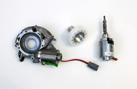 The system is designed using a precision-controlled actuator using an electric motor and gearing system that fits inside the steering wheel.