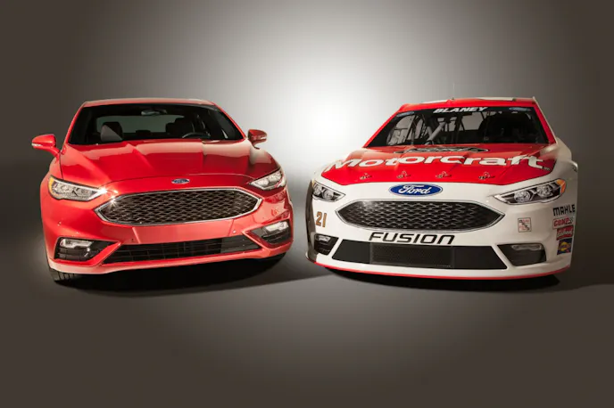 Though NASCAR has strayed far afield from its roots as a “stock car” racing championship, a new ruling three years ago allowed auto manufacturers more leeway in making their race cars look like the production cars they’re named after. Thus the 2013 Ford Fusion became the more-refined face of Ford’s NASCAR efforts, and so it will be again next week when the refreshed look of the 2017 Fusion readies for its February competition debut at Daytona Speedweeks.