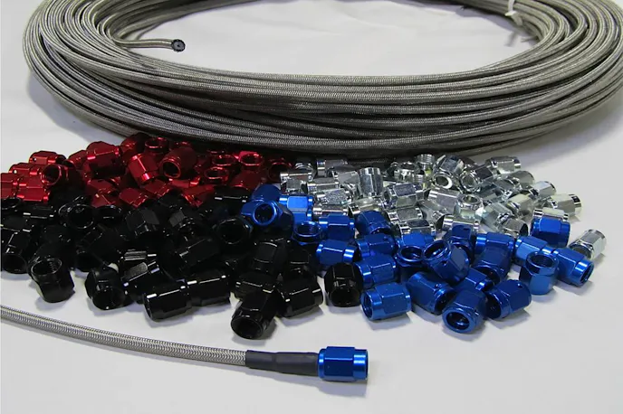Fragola’s new line of -2 pre made brake lines are now shipping. These brake lines are made with -2 PTFE stainless steel hose. Pre made lines are available with steel or aluminum -3 nuts.
