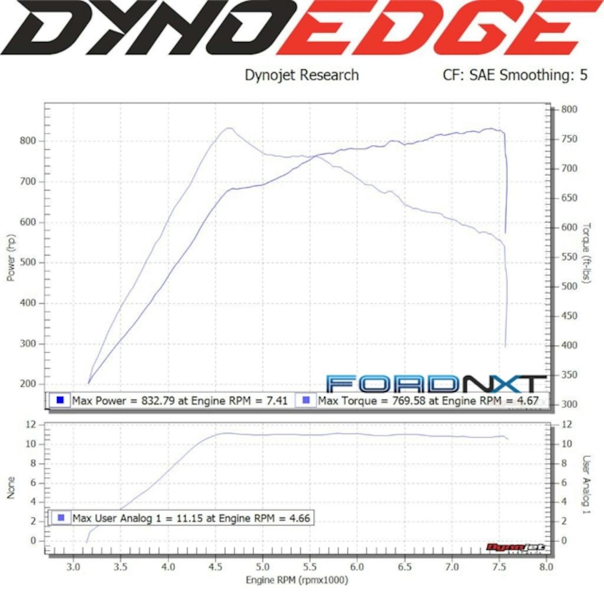 “Erik Brooks and Braden Bergher over at HP Tuners went in and gave us access to all the parameters we needed for Eddie Rios at Addiction Motorports to tune it remotely on Chris Groves’ dyno at The Dyno Edge. It’s a group effort here,” John said. “Basically we turned it up and learned those tables while getting a handle on the blend between port and direct injection and on the final pull, running out of fuel, we made 840 horsepower at 11 pounds of boost.”
