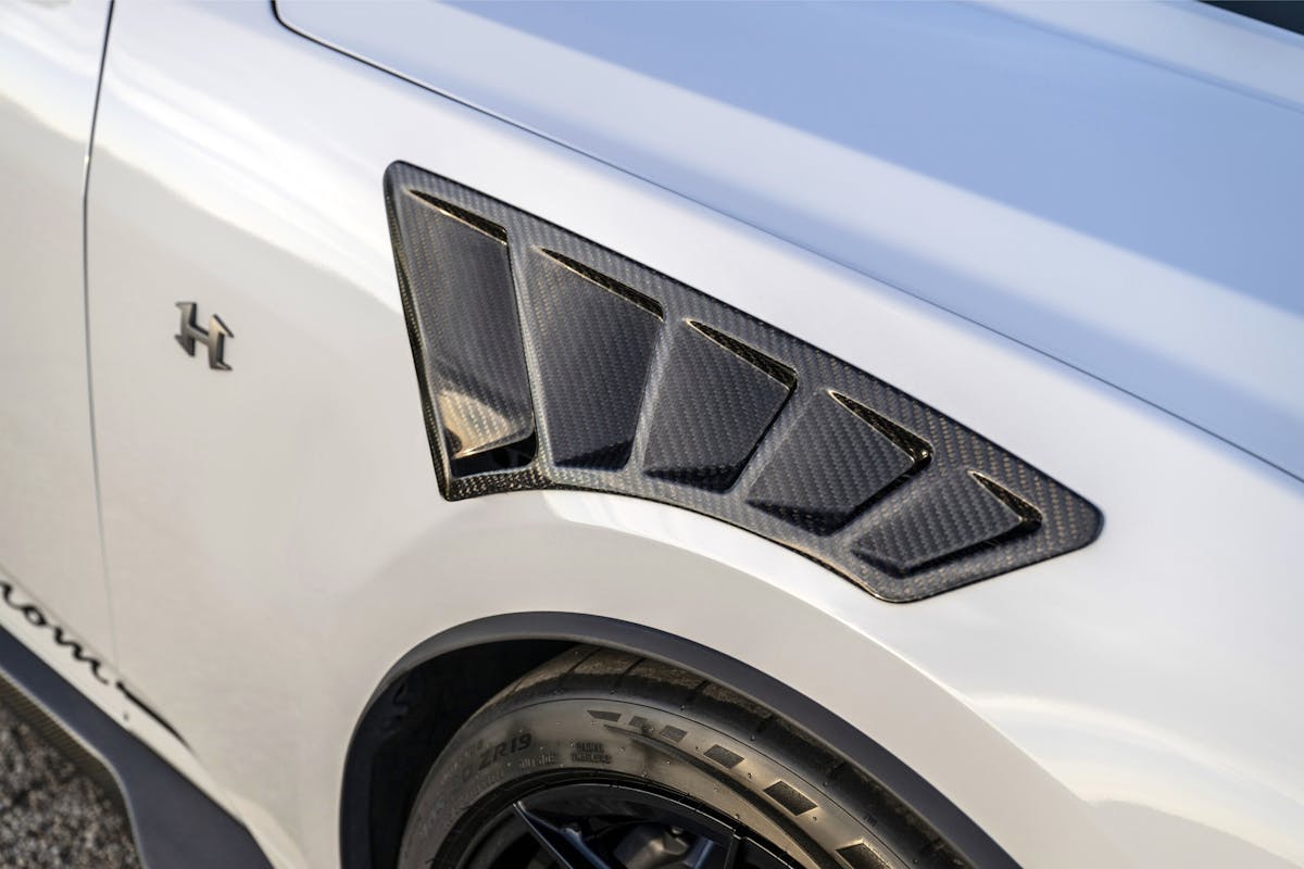 However, it’s not just brawn that sets this package apart. Drawing from the technology used in the Venom F5, the Super Venom wears a complete VenomAero package designed to enhance handling, cooling, and overall track performance through improved downforce. The carbon fiber package includes an engine trim, front splitter, active hood vent, functional fender louvers, side skirts, rear deck lid, lip spoiler, gooseneck track wing, and side mirror caps, all working together to create a more planted and aerodynamic ride.