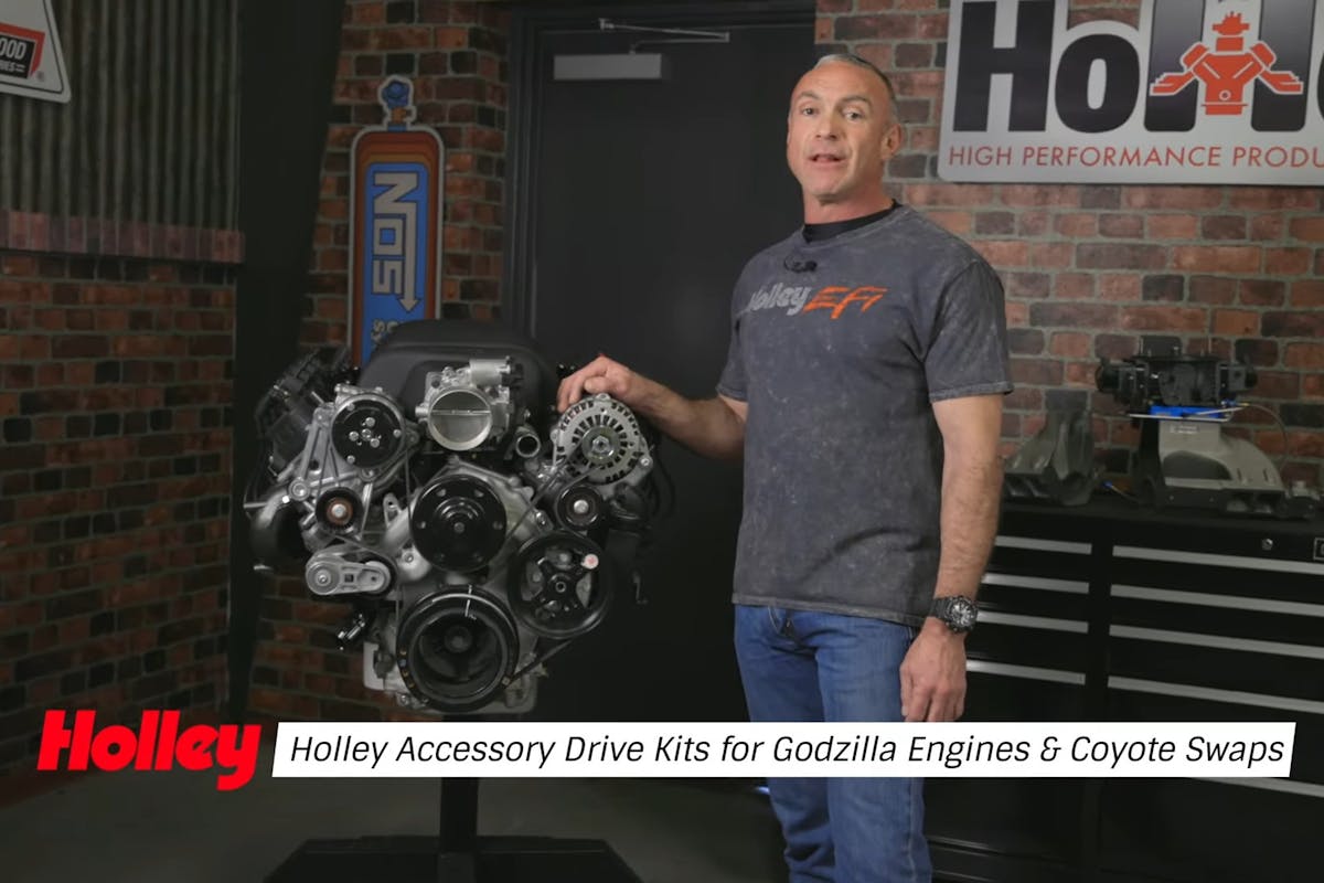 If you’re dreaming of modern muscle in your classic Ford truck, swapping a high-revving Coyote or a monstrous 7.3-liter Godzilla V8 into a 1953-79 F-100, F-150, or F-250 presents some challenges. Some of those obstacles involve accessory-drive routing, oil pan clearance, and hood clearance. Holley, a name synonymous with performance fuel systems and engine swaps, created truck accessory drive kits designed to turn your engine-swap dream that dream into a more attainable reality.