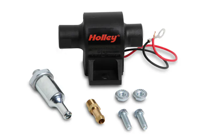 Looking for an easy-to-install fuel pump that will support gas, diesel, blended alcohol and E85 fuels, and up to 400 horsepower from your carbureted engine? Then look no further than Holley Performance Products‘ line of Mighty Mite electric fuel pumps, designed to satisfy the thirst of many different types of engines. Details? Right below.