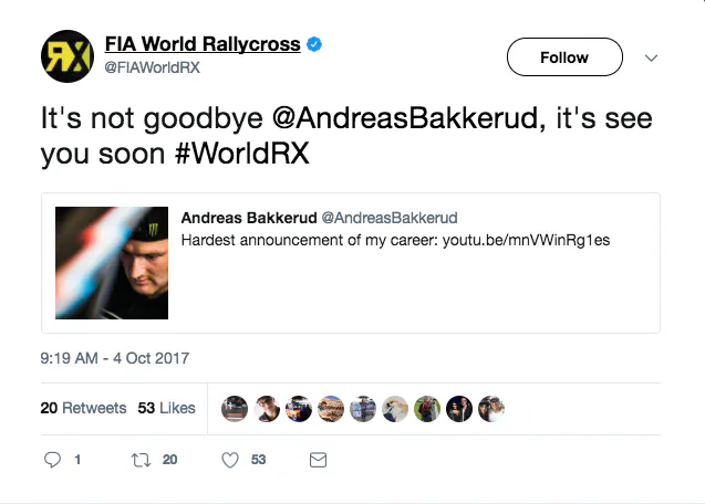 Even the official FIA World Rallycross Twitter page had this to say:
