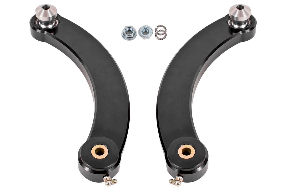 Meant for creature comforts over performance, the factory OEM control arms used a rubber bushing. This rubber bushing absorbs and deflect the power it is given, creating inconsistent handling.The BMR units utilizes a Delrin bushing to prevent these OEM scenarios. In addition, spherical bearings connect the spindle to the upper control arms to improve wheel alignment. The use of both bushing and bearings help withstand extreme power levels without sacrificing articulation. Best of all, these American-made, non-adjustable upper control arms save four pounds over the stock units, so go ahead and finish off lunch without guilt.