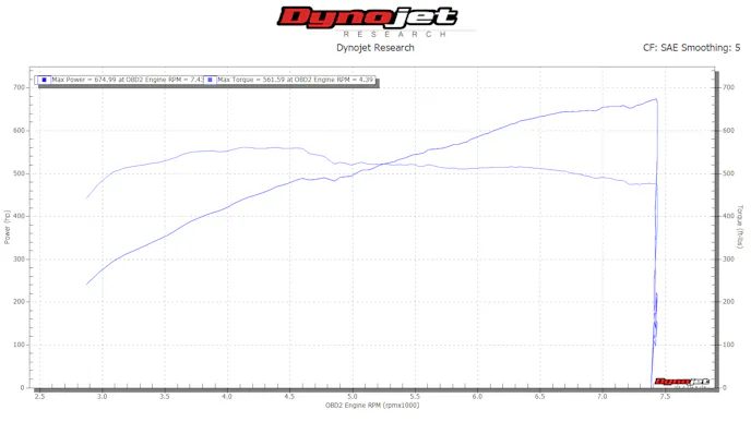 Thankfully things went much better on the Dynojet back at HQ. Using a blend of VP Racing‘s street-legal MS109 to bring our octane from the 91-octane swill available at SoCal pumps up to the 93-octane found in other parts of the country, which the engine was better suited for, the Predator sang the tune of 675 hp and 561.6 lb-ft of torque. Good grief! That’s a lot of power for a stock engine. No wonder it was so difficult to hook at the track.