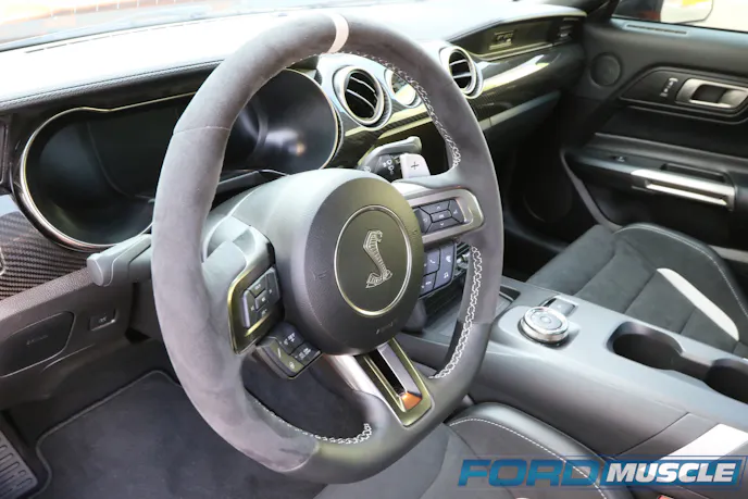The GT500 sports the best of everything on the mechanical side, the Predator shares the larger displacement block design of its GT350 cousin (but with a traditional cross-plane crank). The larger bore affords heads with larger valves and the rotating assembly consists of forged components from the pistons to the crank. The engine is topped with a 2.65L Eaton TVS supercharger and relies on merely port fuel injection and twin high-flow pumps to keep up. The 7-speed dual clutch transmission is complimented by a 3.73 Torsen rearend. The suspension has larger sway bars and Magneride with huge Brembo brakes ensuring the handling is up to par.