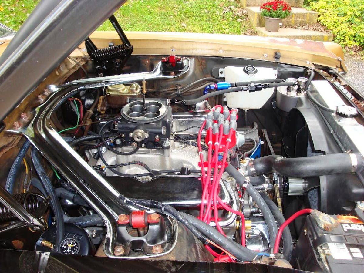 Heatherson tells us the Cougar had been sitting inside a barn for close to thirty years until he dragged it out, amazingly just five miles from his home. The energized Pennsylvanian explains, “the Cougar’s resuscitation began soon after, beginning with a brand new blueprinted 306 powerplant with FiTech fuel injection fueling an estimated 450 horsepower!