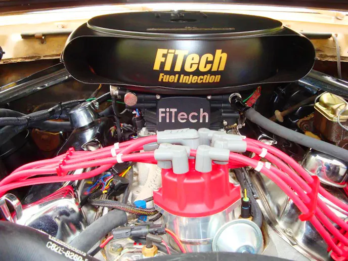 Instantly noticeable is the lightweight fiberglass hood. The one-piece reproduction of a functional GT-E hood was sourced from Canada adding potency to the ’58 style Rocket Olds air cleaner stuffed below. “It fits perfectly inside the hood scoop almost like it belonged there,” Hetherson says emphatically.