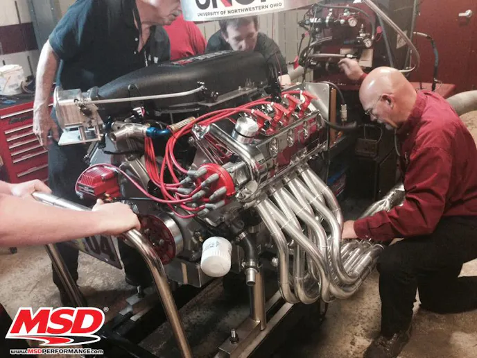 Kaase’s team making adjustments at the Amsoil Engine Masters competition. (MSD photo)