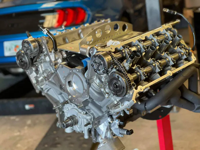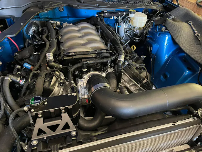 With the engine package dialed in and back in the car, he turned his attention to the suspension to set the car up for straightline duty. Kelly Aiken of KellTrac set him up with KellTrac-tuned Viking coilovers for the front and a complement of BMR Suspension components to keep the independent rear suspension under control when four-digit horsepower is applied. A QA1 carbon fiber driveshaft receives power from the LaSala-built 10R80 transmission and delivers it to the differential.