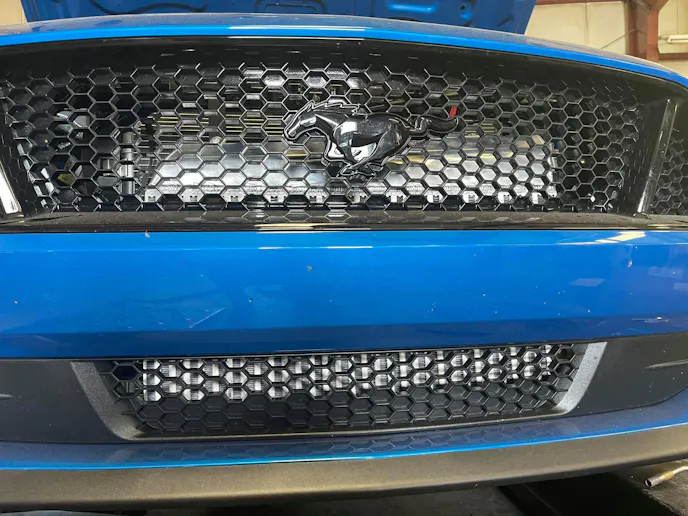The package’s highlight is the well-known Hellion Power Systems Sleeper twin-turbo kit offered for 2018-up Mustangs, along with select other upgrades JPR installed to support the power level without going into overkill mode. These changes are based upon Jordan’s research and personal experience with this platform and have proven themselves over time. The turbo system features a pair of Hellion’s Sleeper 62mm billet wheel turbochargers and a massive 6-inch-core intercooler mounted in the nose, which catapulted the Mustang to record a massive 1,008 rear-wheel-horsepower figure as Jordan prepares the car for racing at the NMRA season opener.