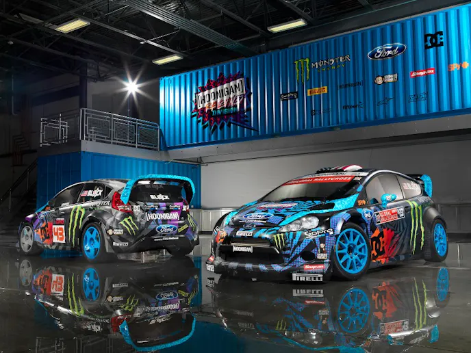 With Block setting himself up as the leader of the Hoonigan Racing Division, the timing for a new look couldn’t be better, and skateboard graphics are only part of the influence. Block also names the powerboats from the Miami Vice era and hair metal and old school hip-hop as influences on the style and look of his new, blue, Fiesta race cars.