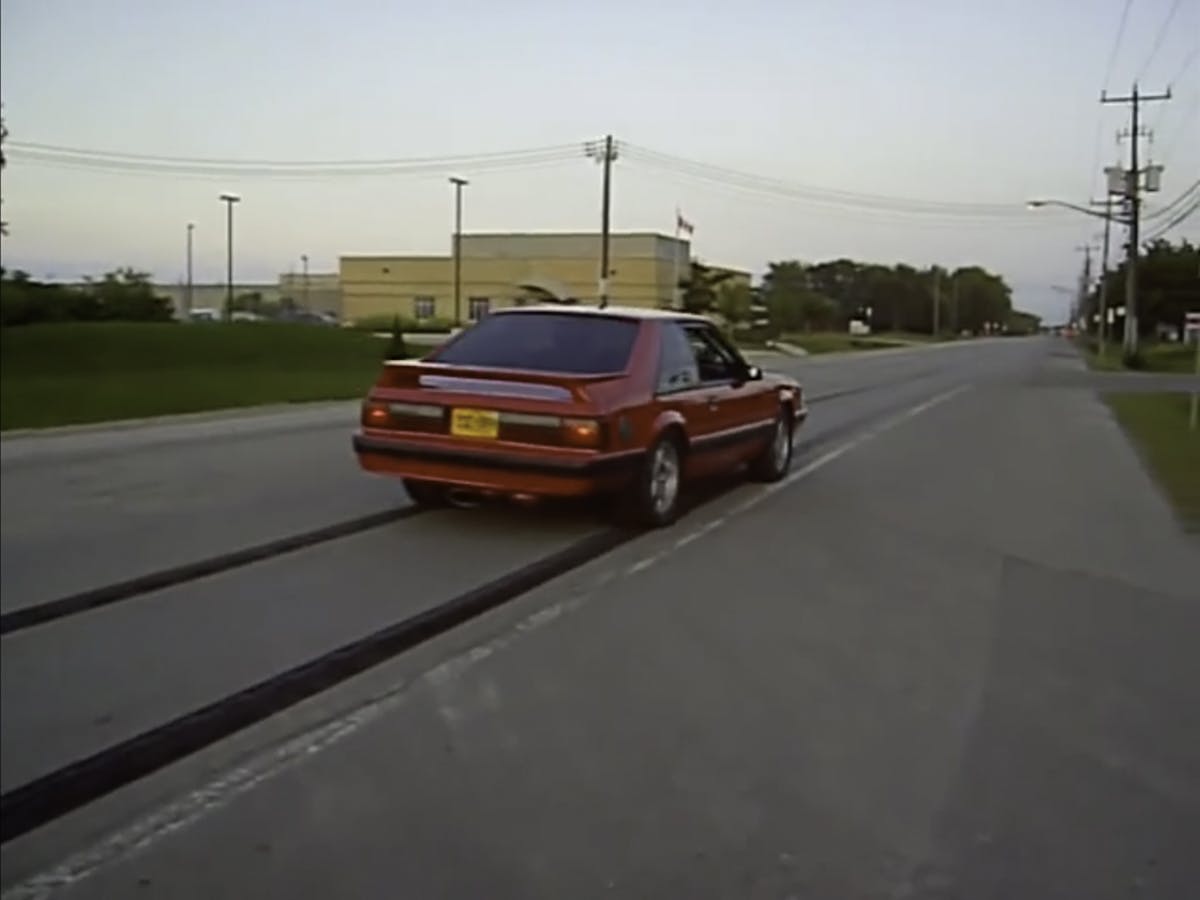 It doesn’t just give a quick start and go burnout either, as the driver keeps his foot in it and the tires continue to smoke and drag the burnout quite a ways down the road. He has little trouble making long black marks with this car. It also doesn’t hurt that the tires are apparently old and bald.